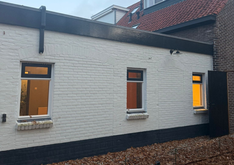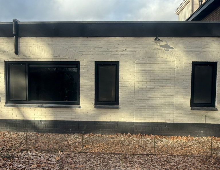 Bij deze woning zijn er kozijnen geplaatst met het Softline 82 NL profiel met houtverbindingslook in de kleur zwartgrijs (RAL7021) met houtnerfstructuur.