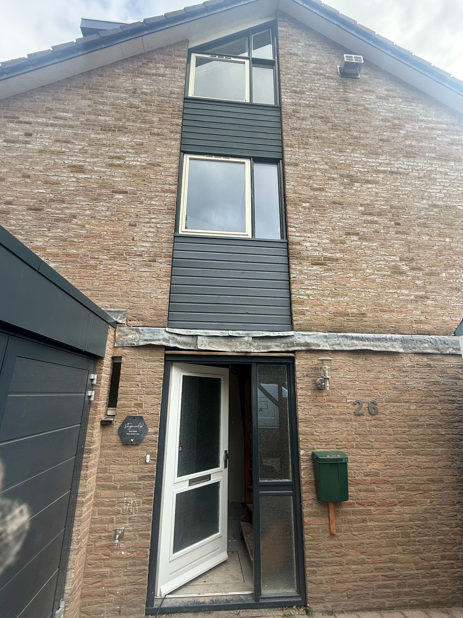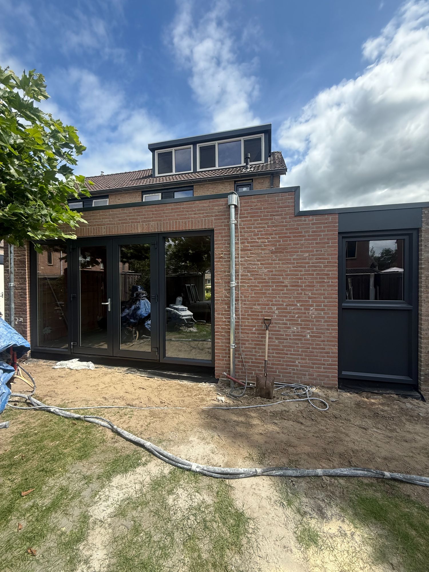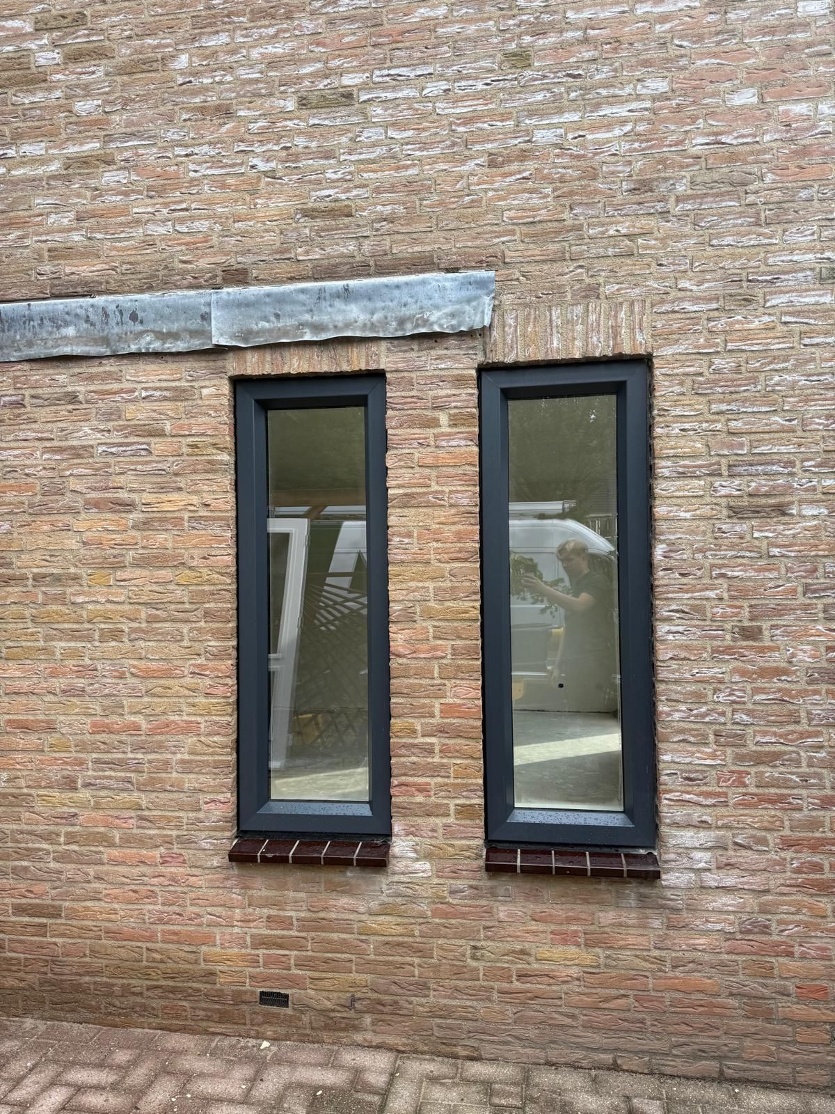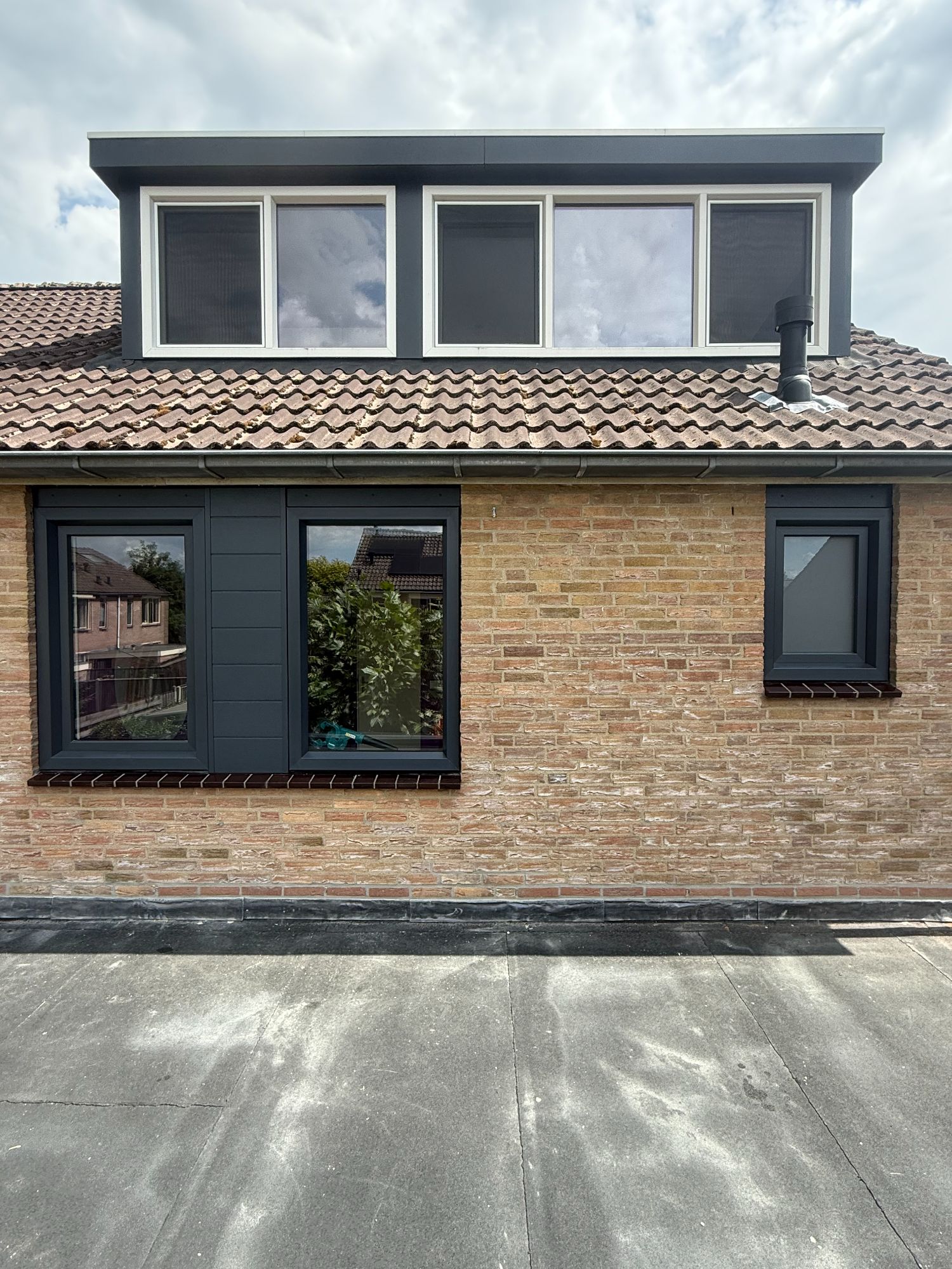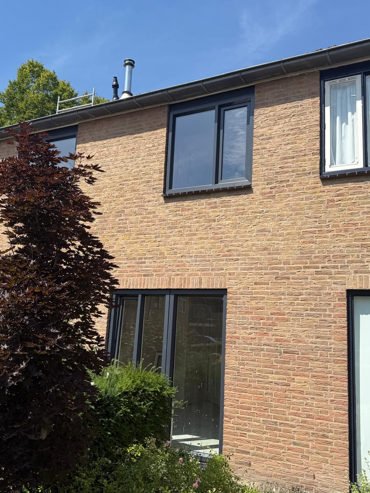 Bij deze woning hebben we alle oude houten kozijnen vervangen door duurzame, onderhoudsarme kunststof kozijnen in antraciet (RAL 7016) met houtnerfstructuur.