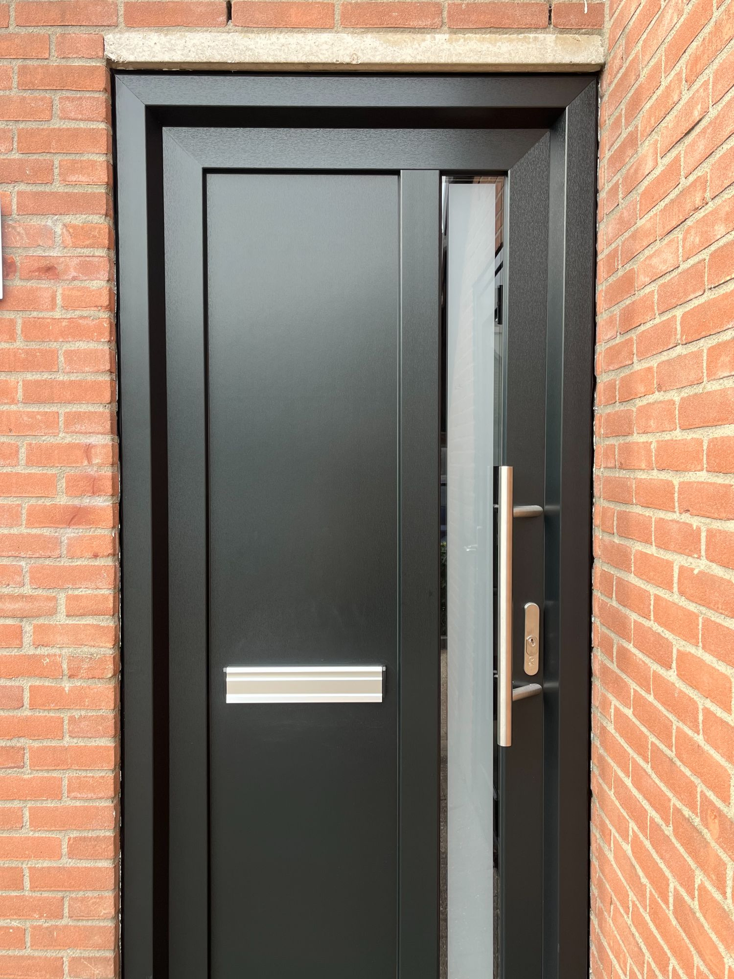 Bij deze woning hebben wij de oude houten kozijnen aan de voorgevel vervangen door kunststof kozijnen van het type Softline 82 NL. De bewoners kozen voor de kleur monumentengroen generfd (RAL6064). Hoewel de kleur op het eerste gezicht bijna zwart lijkt, geeft het bij daglicht een stijlvol groen accent aan de woning.